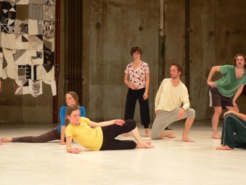 Aber nicht nur die Haltung der Tänzerinnen bei Dance ist musikalisch, auch die Choreographie als solche ist es. Für mich zerfällt die Choreographie bei “Dance” in drei große Abschnitte: vor, während und nach der Musik. Der erste Teil - vor dem Einsetzen der Musik - hat den Charakter eines Workouts oder Trainings. Aus dem Dehnen, Rennen, verschiedenen Tanzbewegungen und Atmen jedes einzelnen Tänzers für sich ergibt sich für den Zuschauer eine Choreographie. Sobald die Musik einsetzt, transformiert sich dieses Training in Diskotanz. Bewegungen und Sequenzen aus dem Workout sind wieder erkennbar, aber passen wie selbstverständlich zur Struktur der Popmusik, zu der nun getanzt wird. Irgendwann ist die Musik zu Ende, aber die Choreographie geht weiter - jetzt aber nicht mehr als Workout sondern als Bühnentanz. Nicht das sich die Qualität der Bewegungen der Tänzerinnen stark verändert hätte, aber die Musik hat dem Bühnengeschehen einen neuen Aspekt hinzugefügt, der auch mit ihrem Ende nicht wieder verschwindet. “Dance” ist für mich das musikalischste Tanzstück, das ich bisher gesehen habe. Nicht weil die Musik außergewöhnlich war, oder weil der Tanz die Musik außergewöhnlich interpretiert, sondern weil dem Dualismus von Musik und Tanz etwas Drittes hinzugefügt wurde - jene innere Zweckmäßigkeit der Tanzbewegungen - und vor dem Hintergrund dieser nicht-musikalischen und nicht-tänzerischen Zweckmäßigkeit gelingt es den Tänzern in “Dance”, die Verhältnisse von Tanz und Musik zum Tanzen zu bringen. “Dance - Gruppenversion” (Choreografie und Tanz: Alice Chauchat, Frédéric de Carlo, Frédéric Gies, Sarah Menger, Ulrike Melzwig, Christian Modersbach, Petra Sabisch, Isabelle Schad, Odile Seitz) wird das nächste Mal im Rahmen der Tanznacht Berlin gezeigt. Unbedingt hingehen! Nur der Vollständigkeit halber und weil es auch während des Publikumsgesprächs einige Auseinandersetzung darum gegeben hat, wäre noch zu erwähnen, dass das Dritte - also der Zweck auf den sich die Tanzbewegungen zuerst beziehen, Body Mind Centering ist.